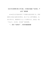社区书记党建引领工作汇报:乡村振兴绘就“农村美、产业旺”新图景*乡*社区在区委的领导下不断强化基层党建工作,紧紧围绕乡村振兴战略目标要求,致力于在人居环境整治、弘扬文明乡风、做强特色产业上下足绣花功夫,绘就出一幅“农业兴、农村美、农民富”的新图景。一、党员“动起来”,村容村貌换新颜*乡*社区以“党建+”为引领,终将党建工作摆在重要位置。我们不断加强党组织建设,严格落实“三会一课”制度,定期组织党员学习党的理论知识和方针政策,提升党员的政治素养和思想觉悟。有力推进美丽乡村建设,充分发挥党员示范带头作用,打造“支部引领、党员带头群众参与”的“党建+”模式。引领人居环境整治,开展好清理乱堆乱放、清理...