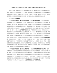 市直机关工委关于2023年上半年市直机关党建工作汇报2023年以来,市委直属机关工委在省委直属机关工委的有力指导下和市委的坚强领导下,认真学习宣传贯彻党的二十大精神,落实新时代党的建设总要求,以建设清廉机关、创建模范机关为抓手,以深入开展党员干部“下基层、察民情、解民忧、暖民心”实践活动为契机,全面提升机关党建工作质效,为打造城乡融合发展示范区贡献力量。一、主要工作开展情况(一)聚焦主责主业,彰显政治机关本色。一是旗帜鲜明讲政治。要求市直各单位研究部署每一项工作都要从政治上考量、在大局下行动。深入开展政治机关意识教育,把思想教育、政治监督、整改落实结合起来,引导机关基层党组织和党员干部将对党忠...