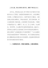 国有企业2022年上半年党建工作汇报和下半年工作打算一、2022年上半年党建工作特色亮点一是恪守本色,助力打赢疫情防控阻击战面对汹涌而来的疫情,支部第一时间成立临时保障团队,以支部为战斗堡垒,确保每个关键岗位、环节都有党员值守;以党员为攻坚核心,全体员工同舟共济,夜以继日高质量完成全市320万核算任务,开辟“绿色通道”检定方舱隔离点互感器720只。坚守彰显奋斗本色,并肩抗疫诠释担当。二是稳扎稳打,自觉担当尽责履职见实效发挥“岗区队”攻坚示范作用,全省首家试点集约化采抄一体运营模式,支委牵头“智能**”与“**监控中心”两项新高地建设取得阶段性成果。紧扣彩虹党员服务队工作要求嵌入业务全链条,开展...