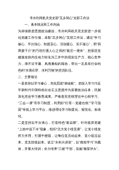 市人民政府驻上海联络处党支部“三抓好一联合二突出一创建”支部工作法一、背景情况XX市人民政府驻上海联络处党支部现有党员9人,主要职能是负责在上海的政务联络接待、信息搜集报送、招商引资等方面工作。大家工作常年在外,工作地点分散,工作性质单一,导致党员无法参加上级党组织举办的各类理论学习和业务培训等活动,党员对党的理论知识学习不深、对业务工作理解不透,支委对党务工作掌握不熟,支部自身活动组织不够丰富,对在沪流动党员管理服务不多。针对存在的这些问题,支部从联络处驻沪工作实际出发,联合上海市XX商会,严抓“三会一课”、主题党日等党建制度落实,加强思想政治教育和业务培训,提高党员思想认识提升党员业务能力...