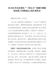 在2024年全区深化“一体五力”党建引领基层治理工作推进会上的汇报发言