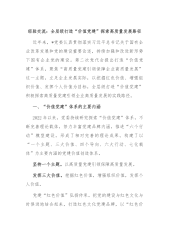 市政务服务和大数据发展局党建联合体工作做法市政务服务和大数据发展局认真落实新时代党的建设总要求和新时代党的组织路线,扎实开展“五基三化”攻坚年行动,探索机关党建融入中心、服务大局的有效途径,推动党建与政务深度融合“双轮驱动”,积极打造“党建云联建政务新服务”的党建品牌,为政务服务和数字建设注入不竭动力。一、开启六大联建模式,把党员干部“拢在一起”针对人员沟通交流较少、派驻党员干部管理不规范等问题,我局推动创建政务服务党建联合体,通过六大联建模式,把我局党员和派驻单位党员“拢在一起”,实现组织活动共建,更好发挥党员的先锋模范作用。一是通过理论联学,共过主题党日、共学党建知识、共听优秀党课、共看红...