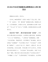 在2024年全市“书记领航”行动暨基层党建工作重点任务推进会上的汇报发言