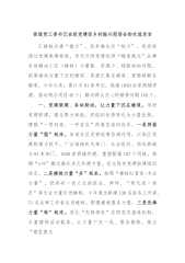 经验交流:坚持瞄准“四点”推进党建工作标准化、规范化建设近年来,市**局党总支坚持“抓党建、带队伍、促业务、出成效”,深入推进党建工作标准化、规范化、特色化、品牌化建设,呈现党建与业务工作双融双促共发展的良好态势。一是坚持以思想建设为破题点,筑牢思想“主心骨”。继续把学习教育作为加强党建的基础工程来抓,持续开展特色鲜明、形式多样、亮点纷呈的学习活动。定期举办业务培训班,邀请党校教授专题讲授政治理论课;每月组织一次专题培训,由党建骨干、业务骨干轮流上讲台,全面提升干部综合能力和水平;坚持以赛促学,先后开展“纪法条规知识竞赛”“业务大比武”“学习强国争霸赛”等活动,引导党员干部强本领、提素质、争先...