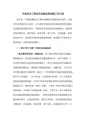 市局创新党建品牌工作成效汇报:”'三家'工作法,惠民'零时差'”党建品牌出实效××市××局围绕新时代高质量机关党建目标,以加强党的全面领导、发挥党组织战斗堡垒和党员先锋模范作用为主线,以”服务对象当家人、群众需求当家事、×工作当家业”为内涵,以”受理零推诿、服务零耽搁、质量零差错、群众零投诉”为标准,创新打造”'三家'工作法,惠民'零时差'”党建品牌,有效推动机关党建与业务深度融合,做法被民政部《中国社会报》专题报道。一、实施背景×部门承担着党委政府最底线的民生保障,最基础的社会治理,最基本的社会服务和专项行政管理职能,服务对象以”老弱病幼困”为主,都是最需要关爱的人。×系统党员的能力素质和服...