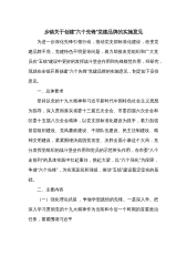 某支部党建品牌创建工作实施方案一、指导思想以贯彻落实党的基本方针为主线,紧紧围绕党的中心任务,将党建工作中涌现出来的先进典型、蕴含的先进理念创新的工作思路、成功的工作模式创建成党建品牌。激发基层党组织的活力,推动党建工作整体水平的提高。创建以***体系为中心,“***”党建为基本组成部分的全系统党建品牌,发挥示范带动效应,提升全系统党建工作水平,把支部建设成凝聚人心推动发展、促进和谐的领导核心和战斗堡垒,为加快实现我市旅游文化产业跨越式发展提供坚强的推动力。二、基本原则(一)遵循党章、依法创建的原则。严格按照党章规定,贯彻党的路线方针政策,遵守法律法规,在总结党建工作成功经验作法,继承发扬优良...