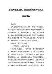在区直工委“光荣在党50年”纪念章颁发暨第一批优秀党建品牌、党员先锋岗授牌仪式上的讲话范文同志们:今年是中国共产党成立102周年,在“七一”即将之际,区直工委在这里举行“光荣在党50年”纪念章颁发暨第一批优秀党建品牌、党员先锋岗授牌仪式,具有十分重要的意义。在此,我代表区委向获得“光荣在党50年”纪念章的老党员、向授牌的集体和个人表示热烈的祝贺!向奋战在全区各条战线上的广大共产党员,致以节日的问候!借此机会,我讲三个方面意见。一、不忘历史,方能行稳致远习近平总书记指出:“一切向前走,都不能忘记走过的路;走得再远、走到再光辉的未来,也不能忘记走过的过去,不能忘记为什么出发。”一百多年来,中国共产...