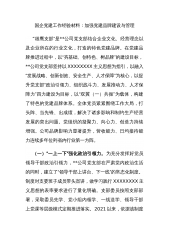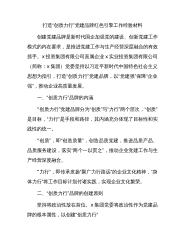 国企创建党建品牌经验做法:“12345”声像工作实践体系构筑党建特色宣传品牌(4466字)近年来,XX党委始终坚持以党建为统领,牢牢把握正确的政治方向、舆论导向和价值取向,以思想政治工作为核心,以打造特色宣传品牌为抓手,融入中心推进企业各类宣传媒体综合发力、协同联动,探索出了“一核二维三层四向五愿”(简称12345)声像工作实践体系,在第一时间以视听结合的方式把党的政治理论、集团战略部署、公司改革发展、科研生产动态、员工创新创造、企业奋斗精神等转化成有筋骨有道德有温度的宣传作品,通过讲好西控故事,有效发挥出了聚焦中心、统一思想,服务大局、凝心铸魂的重要作用。一、突出一个核心,强化党建引领XX党...