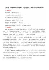目录一、党政机关1.“红色引擎”赋能教育发展4团风县教育局创建党建品牌工作纪实..............42.创建品牌促发展堡垒坚固党旗红................10海南省委直属机关工委宣传部党支部打造党建品牌纪实.103.打造“一社一品”党建品牌构建社区治理新格局..13平遥县城东街道党建品牌创建经验材料...........134.打造四大载体服务居民群众....................16畅家巷整合多方资源夯实“畅享社工委”党建品牌.165.党建引领守正创新............................19湖南广电高质量打造具有芒果特色的党建品牌.....19...
