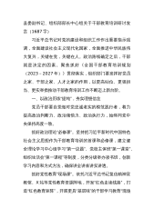 县委副书记、组织部部长中心组关于干部教育培训研讨发言(1687字)习近平总书记对党的建设和组织工作作出重要指示强调,全面建设社会主义现代化国家,全面推进中华民族伟大复兴,关键在党,关键在人。政治路线确定之后,干部就是决定的因素。聚焦抓好《全国干部教育培训规划(2023-2027年)》贯彻落实,组织部门要发挥好党员之家、干部之家、人才之家的作用,以更高站位、更强担当、更实举措推动干部教育培训工作不断迈上新台阶。一、以政治历练“提纯”,夯实理想信念党员干部要自觉做对党忠诚老实的模范践行者,着力提高政治判断力、政治领悟力、政治执行力,始终同党中央保持高度一致。抓好政治理论“必修课”。坚持把习近平新时...