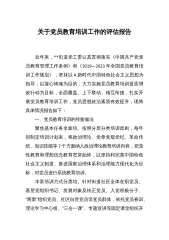 《2019—2023年全国党员教育培训工作规划》实施情况自评报告近年来,*按照《2019—2023年全国党员教育培训工作规划》和《关于贯彻落实的实施意见》要求,积极创新党员教育培训方式,不断丰富教育培训内容,严格落实培训责任,着力构建党员教育培训长效机制。五年来,*各基层党组织举办*期班次轮训党员*万人次,其中本级轮训基层党组织书记*余人次,培训新发展党员*人次。通过教育培训,党员的党性修养和能力素质大幅提升,服务中心科学发展更加自觉,展现省域副中心城市的担当更加主动,先锋模范作用进一步凸显,为决战决胜脱贫攻坚,实施*战略,推进*战略提供了重要组织保证。一、主要做法2019年以来,*结合实际,...