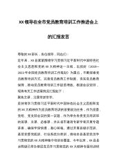 202X年XXX县党员教育培训工作综述今年以来,202X县党员教育培训工作始终坚持以学习习近平新时代中国特色社会主义思想为主线,以贯彻落实《中国共产党党员教育管理工作条例》《xXXX-XXXX年全国党员教育培训工作规划》为抓手,突出抓好党的理论教育、党性教育和专业化能力培训,进一步鲜明主题、精准施训、创新办学,党员教育培训工作党味更浓、科学化水平更高、服务大局更加有力一、狠抓立根铸魂,推动理论武装更加走心将学习贯彻习近平新时代中国特色社会主义思想作为党员教育培训首要政治任务,将习近平新时代中国特色社会主义思想作为各类培训班的必设课程,扎实推进“两学一做”学习教育、“不忘初心、牢记使命”主题教育...