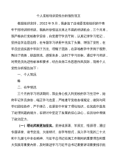 个人党校培训党性分析报告范文根据组织安排,2022年9月,我参加了由省委党校组织的中青年干部培训班培训。我格外珍惜这次来之不易的培训机会,三个月来,我严格执行党校教学安排,自觉遵守学员守则,认真记录学习笔记,坚持边学边思边悟,在专题学习讲座中充实了头脑、增强了党性,在学员交流实践中学到了方法、理顺了思路,在异地教学中开阔了视野、陶冶了情操,获益匪浅、感受良多,达到了学习目标。通过学习培训,对照党员先进性标准和要求,结合自身工作思想作风实际,现将个人党性分析报告如下:一、个人简况略二、在学情况三个月的学习培训期间,我全身心投入到党校的学习生活中,始终牢记学员身份,端正学习态度,严格遵守党校各项规...