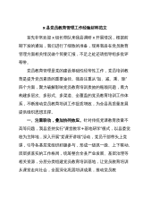 县关于党员教育管理的交流发言首先非常欢迎*组长带队来我县调研*开展情况,根据前期下发的通知,我们进行了细致的准备,现将我县在党员教育管理方面相关情况做个简要汇报,不足之处还请指导组多批评帮带。党员教育管理是党的建设基础性经常性工作,党员培训教“育是提升党员素质的重要途径。我县注重从加、减、乘、”除四个方面,聚力破解影响党员教育培训质效的瓶颈问题,着力构建多层次、多形式、多渠道、全覆盖的党员教育培训工作体系,不断推动党员教育培训工作提质增效,为全县高质量发展提供组织思想支撑。一、注重联动,叠加协同效应。针对传统党课教育质量不“高等问题,我县坚持实行课堂教学+”基地研学模式,以县委“”党校为主阵地...
