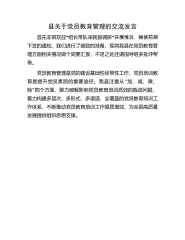 党员教育管理的交流发言:县关于党员教育管理的交流发言