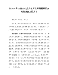在2024年全省全市党员教育优秀创新经验交流座谈会上的发言