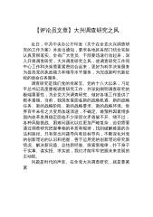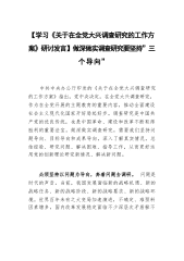2023年专题学习《关于在全党大兴调查研究的工作方案》研讨交流发言材后附实施方案第1篇,共7篇近日,中办印发了《关于在全党大兴调查研究的工作方案》,明确了在全党大兴调查研究的重要意义,提出了在全党大兴调查研究之风的五个必须坚持的总体要求,明确了12个方面的主要调研内容,规定了在全党大兴调查研究的6个方法步骤,强调了4项工作要求。可以说,虽然调查研究一直是党强调的传家宝,全党一直在强化调查研究的重要性并切实持续推进调查研究,但以工作方案和专项通知的形式做出如此系统明确的规定,还是极少见的。可见,越到经济社会发展的关键时期,越到谋事创业的重大关头,调查研究这个传家宝,就越显重要,就越显价值。大兴调...