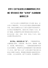 2023年专题学习《关于在全党大兴调查研究的工作方案》研讨交流发言材后附实施方案