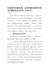 某国企主题教育中心组学习暨读书班关于大兴调查研究之风交流发言稿同志们: 今天我交流的主题是大兴调查研究之风,带领广大党员干部特别是领导干部带头深入调查研究,使调查研究工作同中心工作和决策需要紧密结合起来,更好为科学决策服务,为提高党的执政能力和领导水平服务,为完成新时代新征程的使命任务服务。 在全党大兴调查研究,是深入学习贯彻A新时代中国特色社会主义思想、感悟这一重要思想的真理力量和实践伟力的必然要求,是深刻领悟“两个确立”的决定性意义坚决做到“两个维护”的具体实践,是应对新时代新征程前进路上的风浪考验、推进中国式现代化的有力举措,是时刻保持解决大党独有难题的清醒和坚定、回答“六个如何始终...