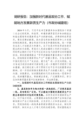 调研报告:加强新时代基层政协工作、赋能地方发展新质生产力(市政协城建组)