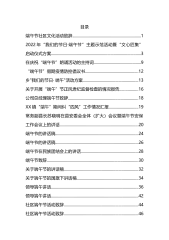 目录端午节社区文化活动致辞...................................................................12022年“我们的节日·端午节”主题示范活动暨“文心匠集”启动仪式方案.......................................................................................3在庆祝“端午节”朗诵活动的主持词..............................................9“端午节”假期疫情防控倡议书......................