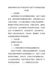 清镇市商务局2023年“我们的节日·端午节”文明实践主题活动方案一、指导思想认真贯彻落实XXX系列重要讲话精神、党的**大精神,及省、贵阳市精神文明建设相关要求,培育和践行社会主义核心价值观,大力弘扬以爱国主义为核心的民族精神,围绕端午节民间习俗和文化内涵,开展形式多样、健康向上的节日活动,充分挖掘端午节的浓厚文化内涵,引导群众进一步了解传统节日,认同传统节日,过好传统节日,增强广大群众的价值认同、文化自信、爱国情怀,为“强省会”建设提供精神动力和道德滋养。二、活动主题浓情端午传承文明三、活动安排(一)开展各类新时代文明实践志愿服务活动以端午节为契机,积极弘扬志愿服务精神,结合创建全国文明城市...