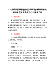 xx县巩固拓展脱贫攻坚成果同乡村振兴有效衔接常态化督查提升行动实施方案一、工作目标聚焦巩固拓展脱贫攻坚成果、防返贫动态监测、乡村建设、乡村治理等重点工作,通过持续开展常态化督查,高效推进我县巩固拓展脱贫攻坚成果同乡村振兴有效衔接各项工作,杜绝责任盲区和监管盲点,确保各项工作任务闭环提升、工作成效日趋明显。二、成立专班成立xx县巩固拓展脱贫攻坚成果同乡村振兴有效衔接常态化督查提升工作专班。组长:xx副组长:xx、xx成员单位:县纪委监委、县委组织部、县农业农村局、县乡村振兴局、县发改局、县人社局、县教育局、县卫健局、县医保局、县住建局、县自然资源局、县水务局、县民政局。工作专班下设办公室,办公室...