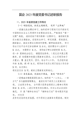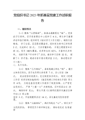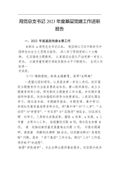 局党总支书记2023年度基层党建工作述职报告一、2023年度基层党建主要工作自担任x局党总支书记以来,我坚持以习近平新时代中国特色社会主义思想为指导,深入学习贯彻党的二十大精神,扎实推进主题教育,认真落实全面从严治党第一责任人责任,以高质量党建引领政务服务水平不断提升,各项工作取得一定成效。(一)增强党性,抓实主题教育,筑牢“主阵地”一是强化组织领导。认真落实第一责任人责任,把开展好主题教育作为当前首要政治任务,精心组织谋划。成立主题教育领导小组,研究制定主题教育工作方案,并定期开展指导和督促,切实加强组织领导与统筹谋划。二是深化理论学习。通过读书班、专题辅导报告、专题党课、集中研讨、参观红色...