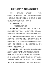2021年,我深入领会XX公司党委“XX”的工作思路,认真落实公司年度党建工作会议精神及公司党委各项部署,坚持党群工作深度融合、服务大局、发挥作用,较好地完成全年各项目标任务。现述职如下:一、开展的主要工作(一)坚持夯实党建基础管理深化管党治党责任落实。年初组织召开党建纪检工作会议,组织公司党委主要负责人与基层支部签订党建工作目标责任书。依据党委工作报告制定全年党建工作任务清单,将任务逐一分解到支部,压紧压实抓党建的责任。制定党建责任落实监督考核方案,分层级明确任务,开展差异化考核,将压力逐级传导到每个支部、每名党员。健全管党治党制度体系。依据xx省公司党委制度,完善公司党建制度体系,新建制度...