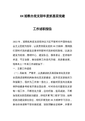 XX银行202X年度的党组织书记抓党建工作述职报告2022年,在市分行党委的正确领导下,本人与一支部全体支委坚持以政治建设为统领,深入学习贯彻党的二十大精神和习近平新时代中国特色社会主义思想,认真落实新时代党的建设总要求,积极履行党建“第一责任人”职责,将党建工作与经营工作紧密结合,努力以高质量党建助推高质量发展,为市分行完成各项工作任务提供了有力保障。现将履行抓党建工作情况报告如下:一、2022年度党建工作情况(一)加强党的政治建设和思想建设方面一是第一时间学习领会习近平总书记在中国共产党第二十次全国代表大会上的报告和大会精神,学习宣传贯彻党的二十大精神实施方案。二是坚持把党的政治建设摆在首...