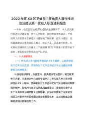 2022年度XX区卫健局主要负责人履行推进法治建设第一责任人职责述职报告