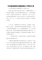 市交通运输局党风廉政建设工作情况汇报市交通运输局党风廉政建设工作情况汇报制定完善了领导干部经济责任审计、重要事项报告、干部选拔任用制度,签定党风廉政建设责任书、工程项目廉政合同书、预防职务犯罪责任书、治理交通“三乱”责任书,把局党委的要求规定,融入到合同书中,把责任落实到各个岗位、每个人员。以下是达达文档网分享的内容,欢迎阅读与借鉴。今年以来,我局紧密结合交通实际,突出教育、制度、监督三个重点,不断推进惩治和预防腐败体系建设,广泛深入开展党风廉政教育,进一步完善廉政制度,进一步加大监督防治力度,彻底铲除腐败现象滋生蔓延的土壤和条件,为交通事业和谐稳定发展提供了坚实基础和可靠保障。现将工作情况汇...