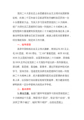 XX单位党委关于各党支部深入学习宣传贯彻党的二十大精神的工作方案党的二十大是在全党全国各族人民迈上全面建设社会主义现代化国家新征程、向第二个百年奋斗目标进军的关键时刻召开的一次十分重要的大会。习近平总书记在大会上作的报告,分析了国际国内形势,提出了大会主题,回顾总结了过去五年的工作和新时代十年的伟大变革,阐述了开辟马克思主义中国化时代化新境界、中国式现代化的中国特色和本质要求等重大问题,擘画了全面建成社会主义现代化强国的宏伟蓝图和实践路径,就未来5年党和国家事业发展制定了大政方针、作出了全面部署,是中国共产党团结带领全国各族人民夺取新时代中国特色社会主义新胜利的政治宣言和行动纲领,是一篇马克思...