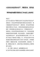 X县长在全县安全生产、消防安全、防汛抗旱和地质地震灾害防治工作会议上的讲话