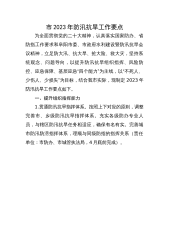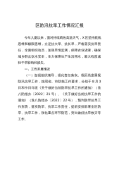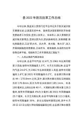 县2022年防汛抗旱工作总结今年以来,我县深入贯彻习近平总书记关于防灾减灾救灾重要论述,认真落实党中央、国务院决策部署和区市各级党委政府工作安排,坚持人民至上、生命至上,深入贯彻防灾减灾救灾新理念;坚持以防为主,防抗救相结合,未雨绸缪,强化风险意识,立足“防大汛、抗大旱、抢大险、救大灾”,深入开展风险隐患排查整改,主动作为、精准施策,全县防汛抗旱形势总体平稳。现就有关工作开展情况汇报如下:一、入汛以来的气候及特点今年以来,全县平均气温12.6℃,为1961年以来同期第2高值,较常年同期偏高1.5℃。6月主汛期以来,全县平均气温24.6℃,为1961年以来同期第1高值,较常年同期偏高1.6℃,较...