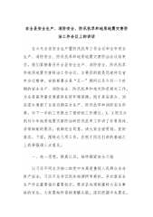 在全县安全生产、消防安全、防汛抗旱和地质地震灾害防治工作会议上的讲话在今天全省安全生产暨防汛抗旱工作会议和全市安全生产、消防安全、防汛抗旱和地质地震灾害防治会议结束后,我们紧接着召开全县安全生产、消防安全、防汛抗旱和地质地震灾害防治工作会议。主要目的就是迅速传达省市会议精神,安排部署全县“五一”期间以及今后一个时期的安全生产、消防安全、防汛抗旱和地灾防范相关工作,为全县高质量发展提供良好环境保障。刚才县安委办、消安委办通报了全县近期安全生产、防汛抗旱和消防安全形势,对下一步的工作提出了很好的工作建议。X、X同志分别对今年地质地震灾害防治和防汛抗旱工作讲了非常具体、非常细致的要求,我都完全同意,...