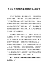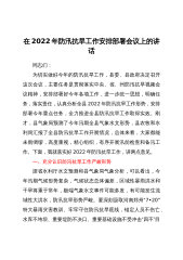 在全区防汛抗旱工作视频会议上的讲话烟台市牟平区副区长姜保华(2022年5月23日)同志们:刚才,我们收看了省市防汛抗旱工作视频会议,省市领导对今年的防汛抗旱工作进行了全面的部署和安排,为我们做好防汛抗旱工作提供了依据和遵循。各镇街区各部门要深入贯彻落实XJP总书记关于防汛抗旱工作的重要指示精神,认真落实省市防汛抗旱工作电视电话会议部署,清醒认识防汛抗旱形势的复杂性和严峻性,坚决克服认识不足、准备不足、工作不足等问题,紧密联系实际,抓好贯彻落实。下面,再强调三点:一、准确把握形势,进一步增强做好防汛工作的紧迫感和责任感一是从政治环境看,防汛压力大。今年将召开党的二十大,这是党和国家政治生活中的一...