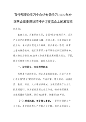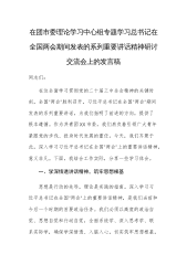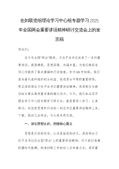 在团市委理论学习中心组专题学习总书记在全国两会期间发表的系列重要讲话精神研讨交流会上的发言稿同志们:在这全面学习贯彻党的二十届三中全会精神的关键时刻,全国"两会"胜利召开,习近平总书记在全国"两会"期间发表的系列重要讲话,为我们指明了前进的方向,提供了根本遵循。作为共青团XX市委,我们肩负着引领广大青年紧跟党的步伐、投身时代发展的重任。今天,我们齐聚于此,深入学习习近平总书记在全国"两会"上的重要讲话精神,意义非凡。下面,我结合工作实际,分享一些学习体会。一、学深悟透讲话精神,筑牢思想根基思想是行动的先导,理论是实践的指南。深入学习习近平总书记在全国"两会"上的重要讲话精神,是我们当前和今后一...