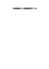 年会致辞个人发言稿范文7篇年会致辞个人发言稿范文7篇非常高兴又一次在这团圆、喜庆和开心的场合当中与大家欢聚一堂,共贺新春。过去的一年,是公司发展历史最令人鼓舞、令人振奋的一年。小编为大家整理的年会致辞个人发言稿范文,希望对大家有所帮助!篇一:年会致辞个人言稿(篇发1)尊敬的各位领导,各位同事大家好:岁月如梭,时光飞逝,又到了年终岁末,每到此时,我们总要对过去的一年进行回顾和总结,对未来的一年进行规划和设想,总结一年的成败得失、经验教训,展望未来的前景。作为某某的一名普通员工,我很荣幸能被评为本年度的优秀员工。在此要感谢公司,为我提供这个平台,让我能充分发挥自己的能力;其次要感谢公司领导,感谢他...