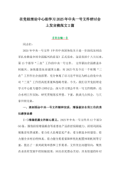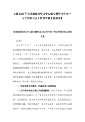 【合编2篇范文】在党组理论学习中心组专题学习2025年中央一号文件研讨会上的发言稿【发言稿一】2025年中央一号文件《关于进一步深化农村改革扎实推进乡村全面振兴的意见》的发布,充分体现了以习近平同志为核的党中央对“三农”工作的高度重视。作为一名分管农业农村工作的领导干部,要认真学习领会文件精神,切实把思想和行动统一到党中央决策部署上来,奋力推动乡村全面振兴。一是深刻领会文件精神,坚定不移推进农业农村现代化。文件强调,实现中国式现代化,必须加快推进乡村全面振兴。要深刻认识到,当前我国发展进入战略机遇和风险挑战并存的新阶段,越是应对风险挑战,越要夯实“三农”工作基础。要以更大的决心、更明确的目标、...
