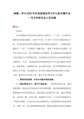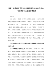 在党组理论学习中心组专题学习2025年中央一号文件研讨会上的发言稿【八篇】汇编供参考在党组理论学习中心组专题学习2025年中央一号文件研讨会上的发言稿同志们:2025年2月23日,《中共中央国务院关于进一步深化农村改革扎实推进乡村全面振兴的意见》重磅发布,这是党的十八大以来第13个指导“三农”工作的中央一号文件,再次彰显了党中央对“三农”工作的高度重视和一以贯之的战略定力。文件围绕“两持续、四着力”,从持续增强粮食等重要农产品供给保障能力、持续巩固拓展脱贫攻坚成果、着力壮大县域富民产业等六个方面,对进一步深化农村改革、扎实推进乡村全面振兴作出了全面部署,为我们扶贫工作队的工作提供了根本遵循和行...
