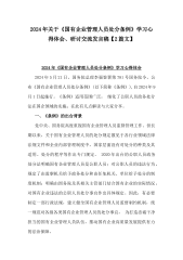 2024年关于《国有企业管理人员处分条例》学习心得体会研讨交流发言稿、研讨宣讲稿【2篇文】