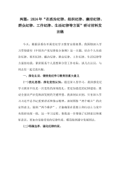 2024年学习教育围绕“六项纪律”(政治纪律、组织纪律、廉洁纪律、群众纪律、工作纪律、生活纪律)发言稿与“廉洁纪律和群众纪律”研讨材料发言稿【共4篇】汇编