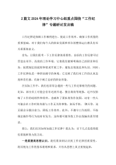 2篇:2024年全面学习教育围绕“六项纪律”(政治纪律、组织纪律、廉洁纪律、群众纪律、工作纪律、生活纪律)发言稿v