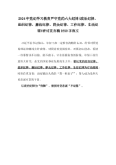 2024年党纪学习教育严守党的六大纪律(政治纪律、组织纪律、廉洁纪律、群众纪律、工作纪律、生活纪律)研讨发言稿1650字范文