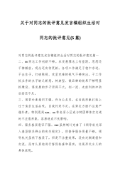 (5篇)关于对同志的批评意见发言稿 组织生活对同志的批评意见