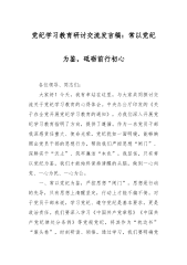 党纪学习教育研讨交流发言稿:常以党纪为鉴,砥砺前行初心(1293字)