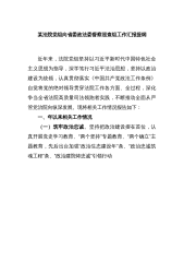 省委政法委督察巡查组,法院党组工作汇报三年工作总结巡察报告近年来,法院党组坚持以习近平新时代中国特色社会主义思想为指导,深学笃行习近平法治思想,坚持以政治建设为统领,认真贯彻落实《中国共产党政法工作条例》自觉将党的绝对领导贯穿法院工作各方面、全过程,深化争当全省法院高质量司法领跑者实践,不断推动全面从严管党治院向纵深发展。现将相关工作情况报告如下:一、x年以来相关工作情况(一)筑牢政治忠诚。坚持把政治建设摆在首位,认真开展党史学习教育、“两个坚持”专题教育、“两个确立”主题教育,先后出台加强“政治生态建设年”x条、“政治忠诚筑魂工程”x条、“政治建院铸忠诚”引领行动x条,采取政治忠诚剖析等措施...