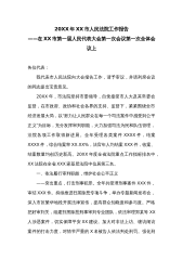 20XX年XX市人民法院工作报告——在XX市第一届人民代表大会第一次会议第一次全体会议上各位代表:我代表市人民法院向大会报告工作,请予审议,并请列席会议的同志提出宝贵意见。20XX年,市法院坚持市委领导,自觉接受市人大及其常委会监督,在市政府、政协和社会各界的支持、监督下,紧紧围绕全市经济发展大局,以“努力让人民群众在每一个司法案件中感受到公平正义”为目标,充分发挥审判职能,大力加强司法为民和队伍管理,法院各项工作取得新进展。全年受理各类案件XXXX件,结案XXXX件,综合结案率XX.XX%,法官年人均结案XXX件,收案、结案数量均创历史新高。20XX年度全省法院重点工作指标排名中,XX法院在...