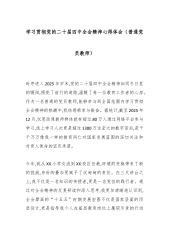 学习贯彻党的二十届四中全会精神心得体会(普通党员教师)时序进入2025年岁末,党的二十届四中全会精神如同冬日里的暖阳,照亮了前行的道路,温暖了每一位教育工作者的心房。作为一名普通的党员教师,能够参与到全国范围内学习贯彻全会精神的热潮中,我倍感荣幸与振奋。据统计,截至2025年12月,仅思政课教师群体就有超过80万人通过网络平台参与学习,线上学习人次更是超过1300万这宏大的数字背后,是千千万万像我一样的教育同仁对国家发展蓝图的深切关注和对育人使命的坚定承诺。今年,我从XX小学交流到XX校区任教,环境的变换带来了新的挑战,身份的叠加更赋予了沉甸甸的责任。在三尺讲台之上,我不仅是一名知识的传授者,...